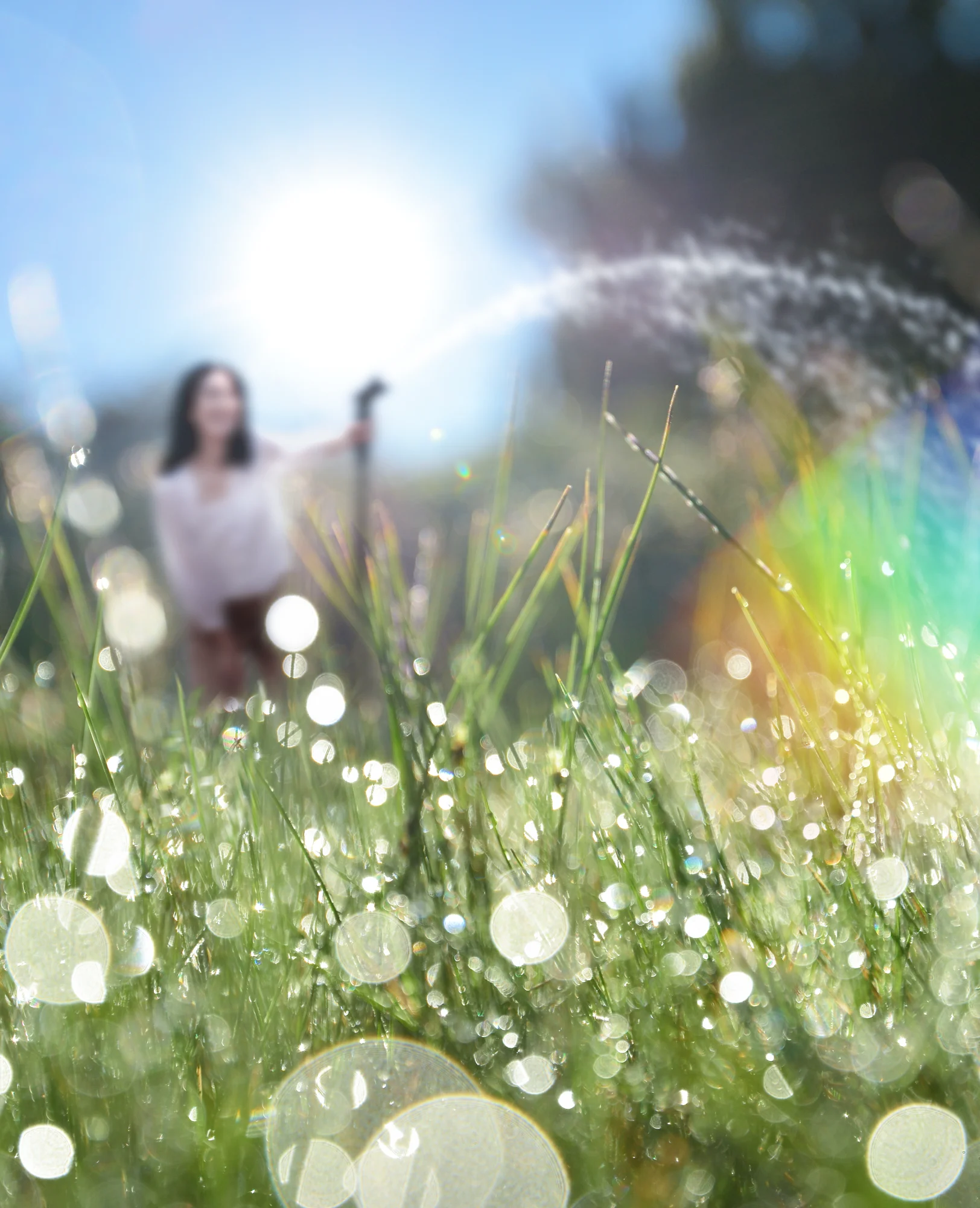 ごくり、と水を飲む。 朝の眠気から、体を呼び覚ますように。 カーテンを開けて、庭に水を撒く。 草木についた雫はきらきらと輝き、 目の前には小さな虹が架かる。